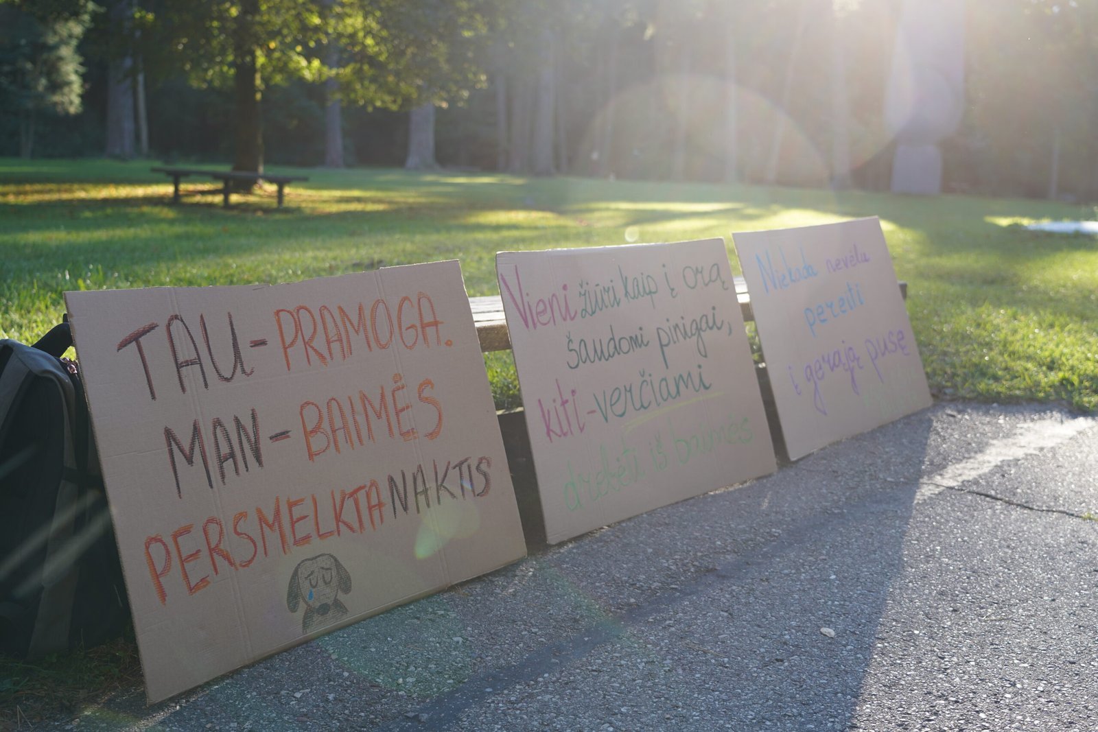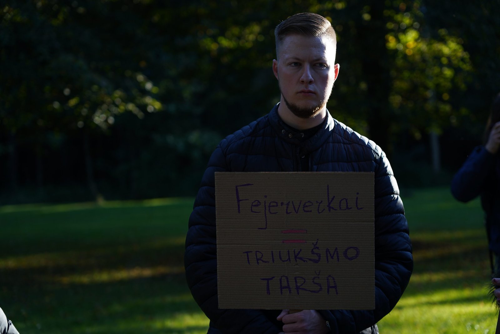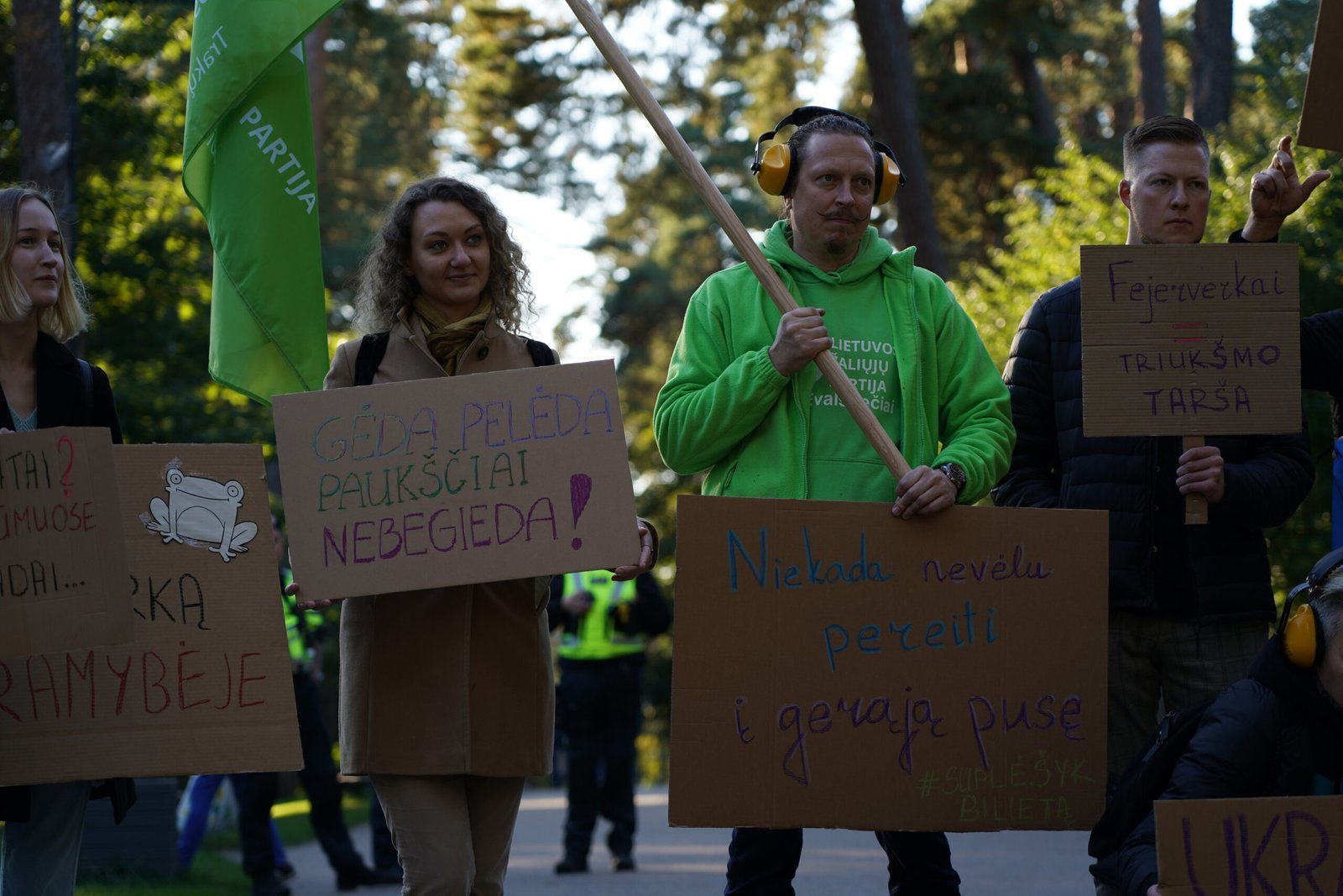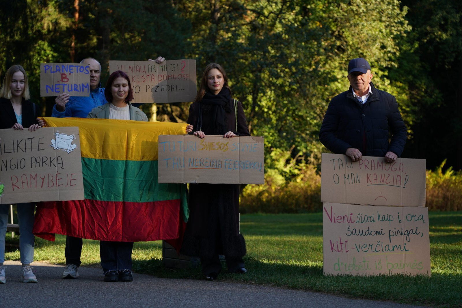 Protestuotojų plakatuose negailėta kritikos ir Vilniaus miesto savivaldybei, kuri nors ir buvo pažadėjusi, kad masinio pirotechnikos naudojimo sostinėje nebebus, leidimą Vilniaus fejerijos festivaliui visgi išdavė.