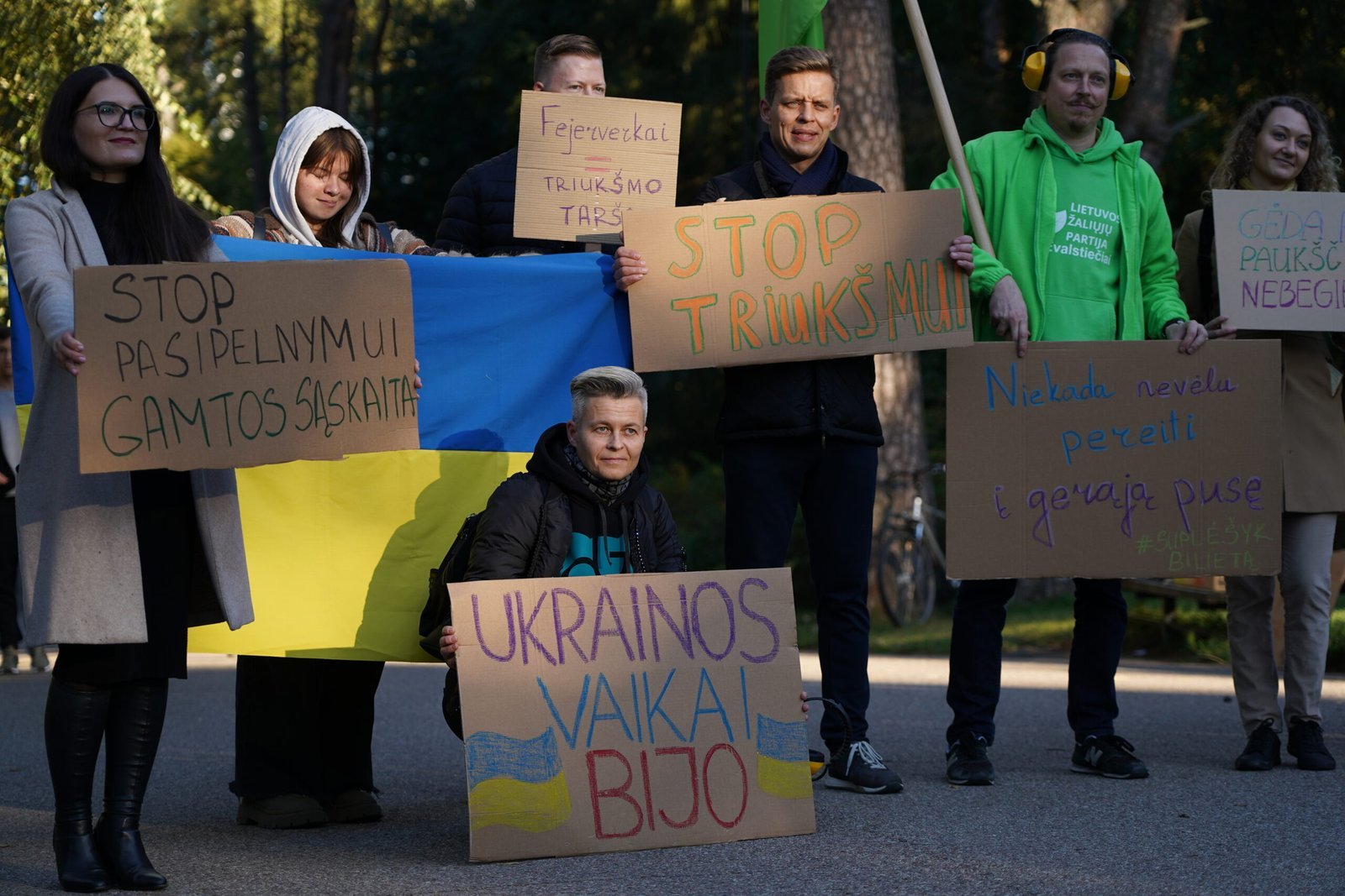 Prieš prasidedant fejerverkų festivaliui proteste buvo galima sutikti ir nuo karo nukentėjusių Ukrainos piliečių. Lietuvoje apsistojusi ukrainietė Valeriia pasakojo, kaip vieną pirmųjų naktų Lietuvoje ją pažadino fejerverkai. Moteris išsigando, nes manė, kad tai priešlėktuvinės gynybos raketos.