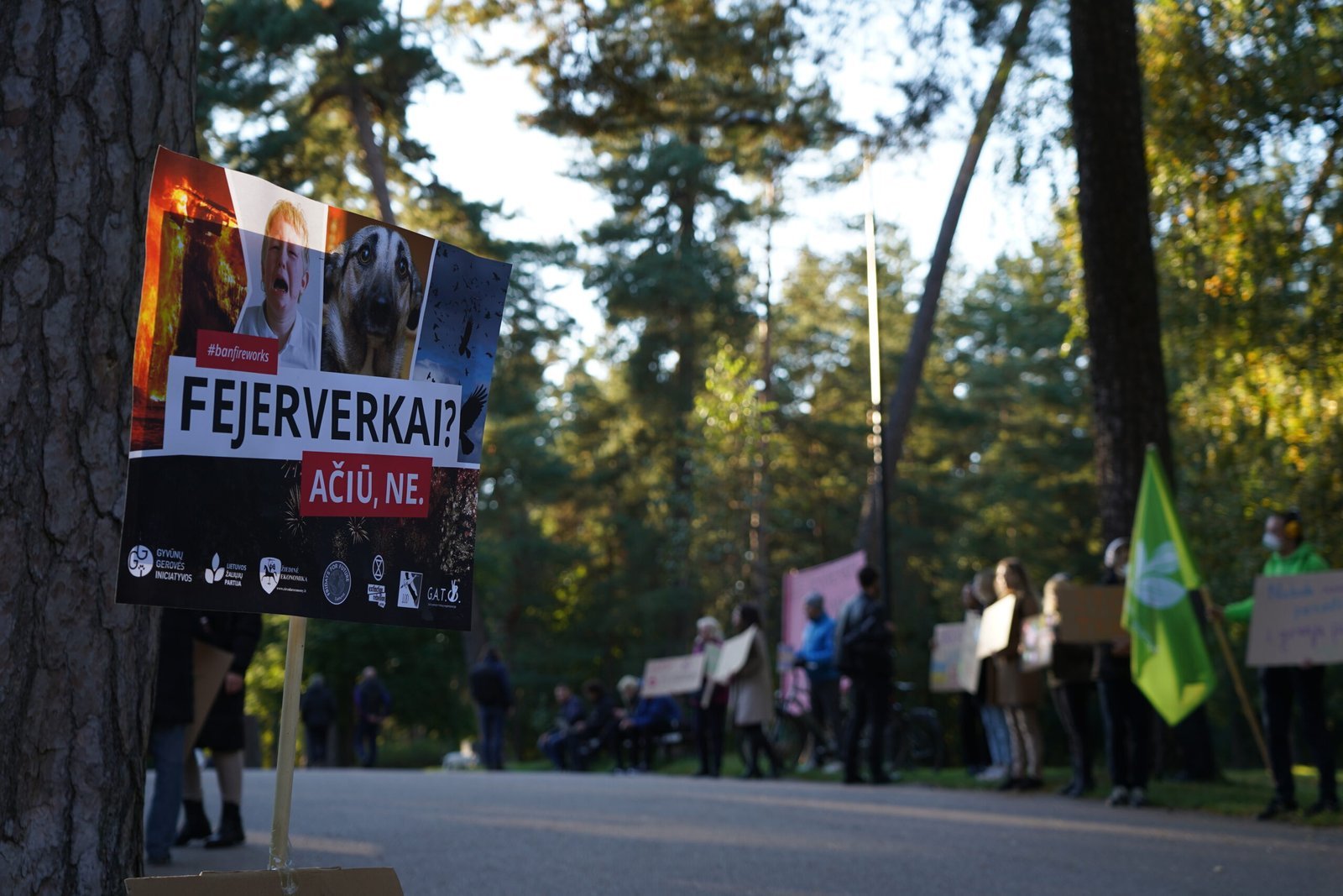 Kaip pastebi akciją organizavusi Lietuvos žaliųjų partijos pirmininkė Ieva Budraitė, fejerverkai kelia pavojų ne tik naminiams, bet ir laukiniams gyvūnams. Girdėdami staigius sprogimus jie patiria stresą, baidosi, gali sutrikti jų orientacija erdvėje, išsigandę jie ima blaškytis, o susidūrę su kliūtimi gali net žūti.
